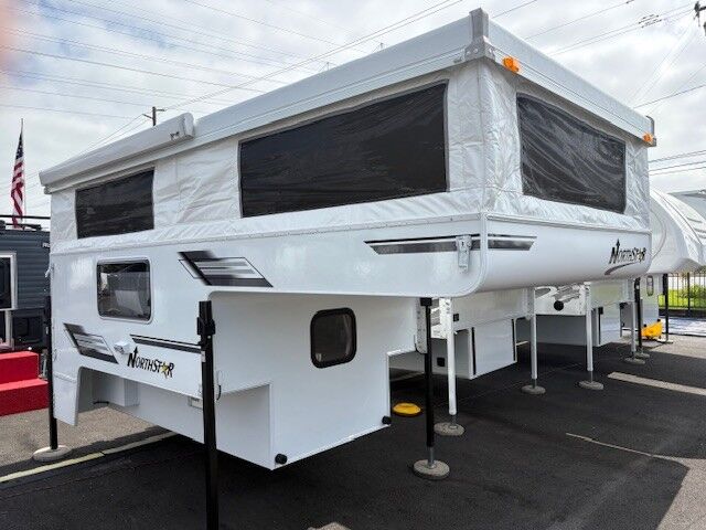 This Northstar camper is designed to fit either a short bed (6’4″ to 6’10”) or a long bed (8′) truck. It comes with many standard features, including an extended cabover north/south 60 x 80 bed and a combined interior shower and toilet.